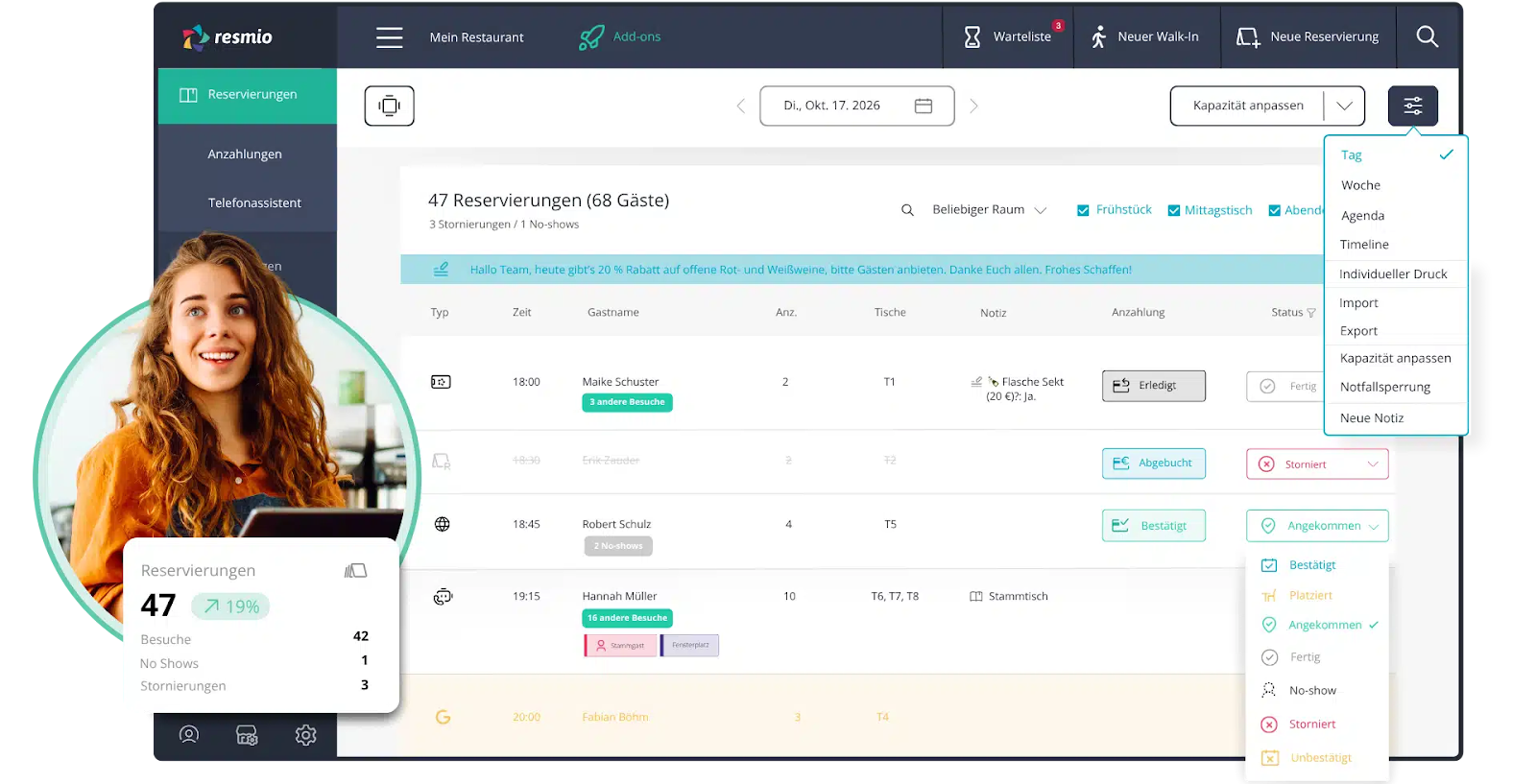 Für stark nachgefragte Restaurants oder bei großen Gruppen ist die Möglichkeit, eine Anzahlung oder eine Kreditkarten-Garantie zu verlangen, ein wertvolles Werkzeug, um sich gegen kostspielige No-Shows abzusichern.