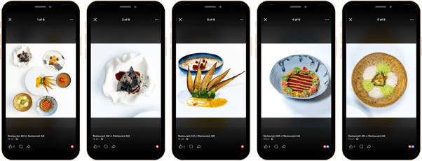 - Pourquoi ça fonctionne : Le format Carrousel est plus immersif qu'une simple image. Il transforme une publicité en une mini-histoire interactive, invitant l'utilisateur à "swiper" pour découvrir la suite. Cette approche permet de montrer l'étendue et la cohérence de votre offre, augmentant ainsi la valeur perçue du repas. Au lieu de vendre un seul plat, vous vendez une expérience complète et maîtrisée, ce qui est bien plus séduisant et justifie un prix potentiellement plus élevé.